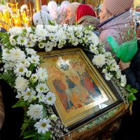 В праздничный день в нашем храме прошли две Божественные литургии. А после их завершения состоялся чин освящения вербы.