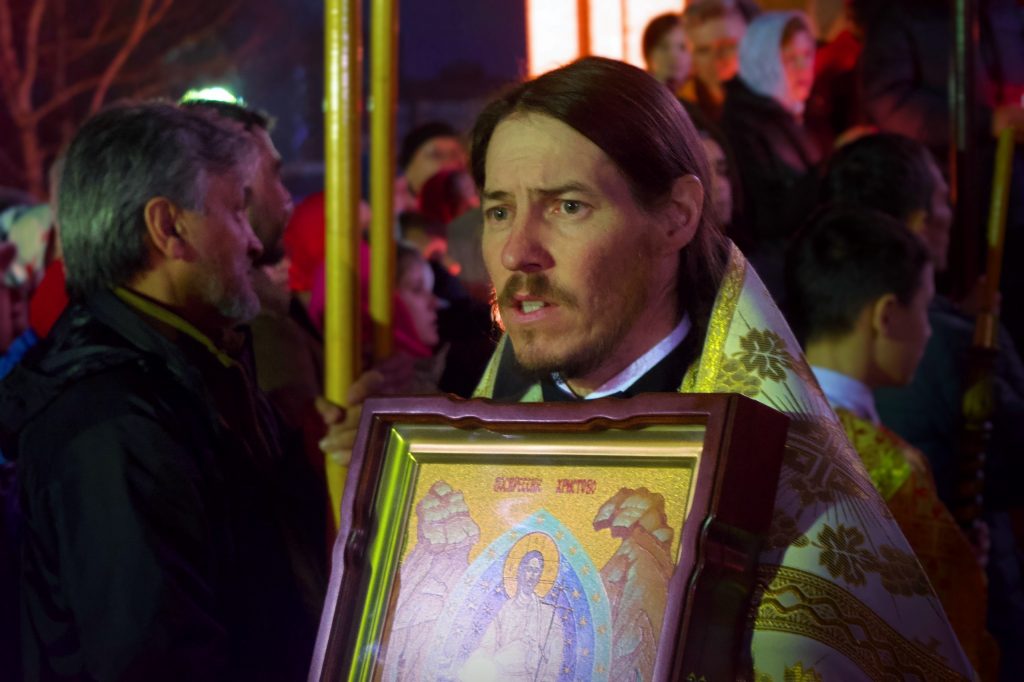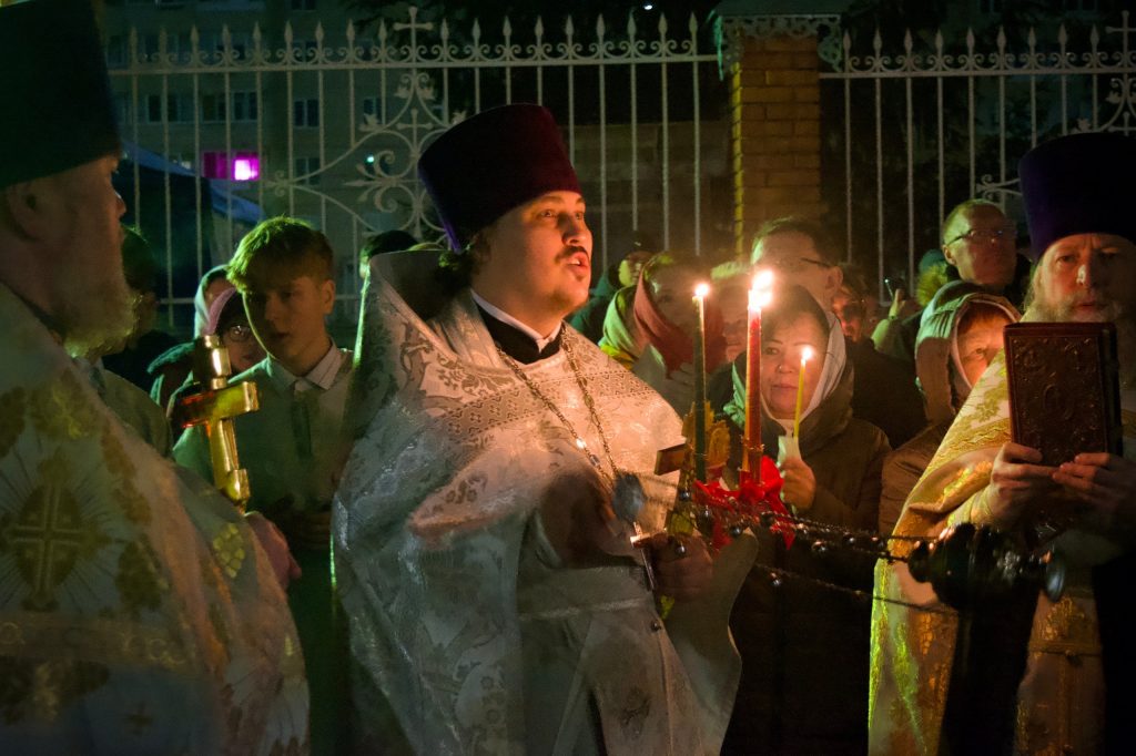 В день великого праздника по традиции в нашем храме совершалась ночная Божественная Литургия, начавшаяся с торжественного крестного хода. Во время Литургии в храм был доставлен благодатный огонь из Иерусалима.