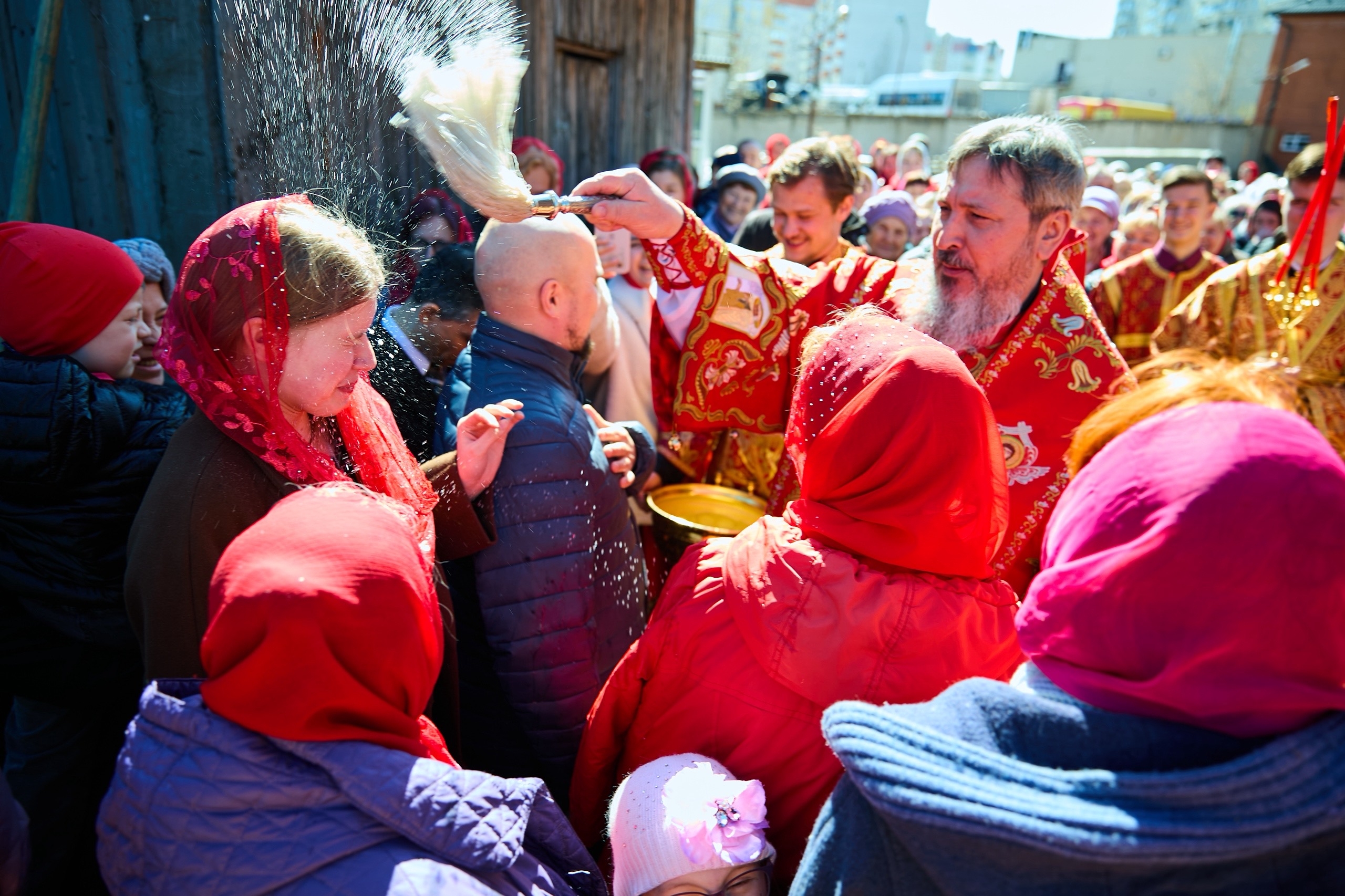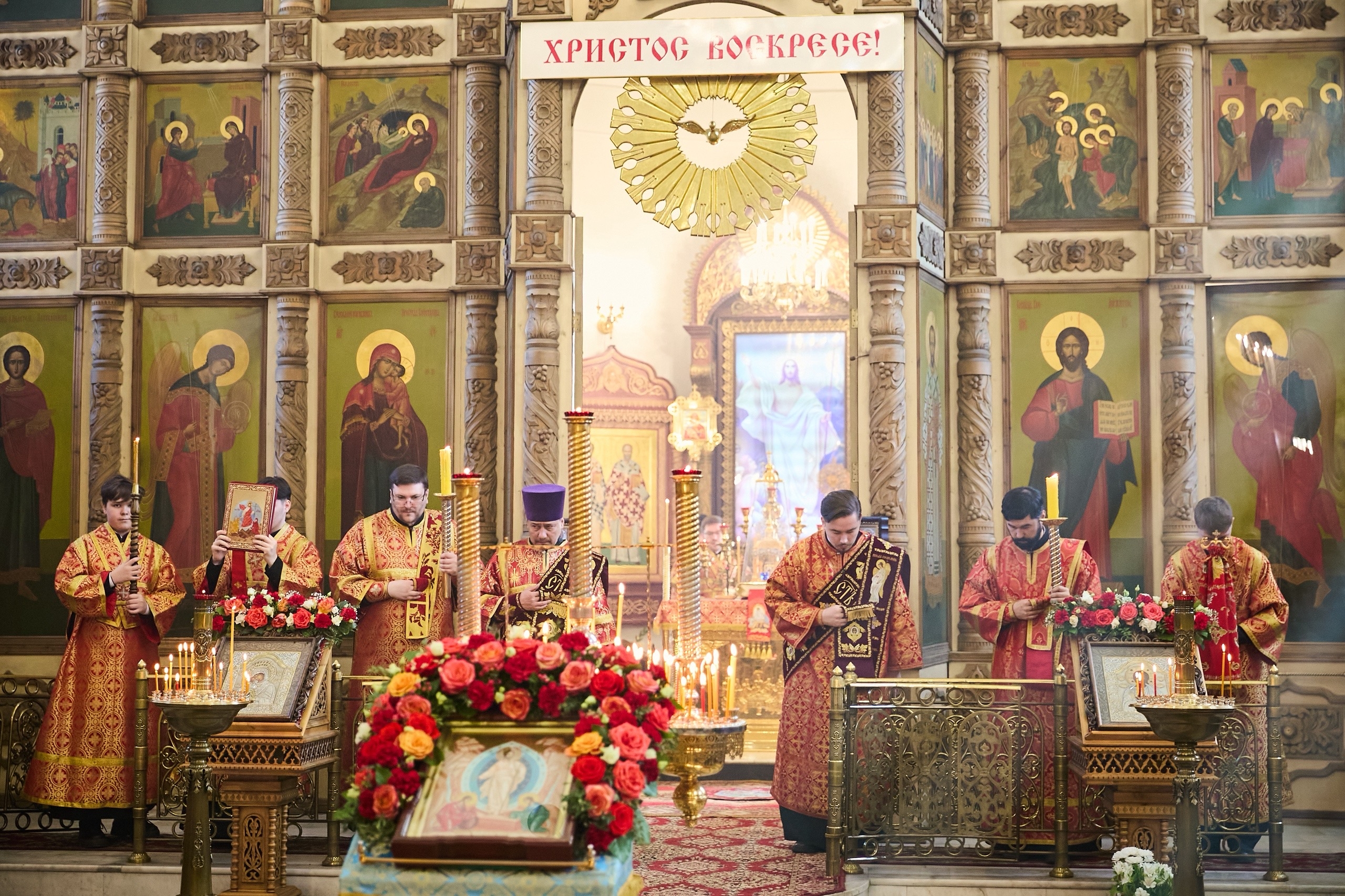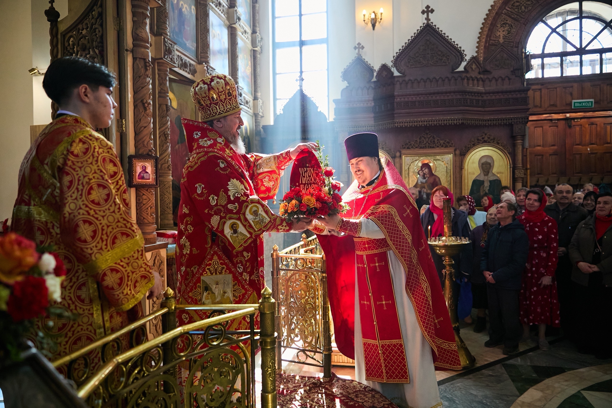 По заамвонной молитве был совершен Пасхальный Крестный ход вокруг храма с пением пасхальных ирмосов и чтения Воскресного зачала Евангелия. По окончании Литургии настоятель храма иерей Александр Спиридонов с Пасхальным приветствием Христос Воскресе от лица духовенства храма поздравил митрополита Савватия светлым праздником Пасхи Христовой. В свою очередь митрополит Савватий поблагодарил отца настоятеля за труды и поздравил всех со Светлым праздником Воскресения Христова и обратился к молящимся с архипастырским словом.